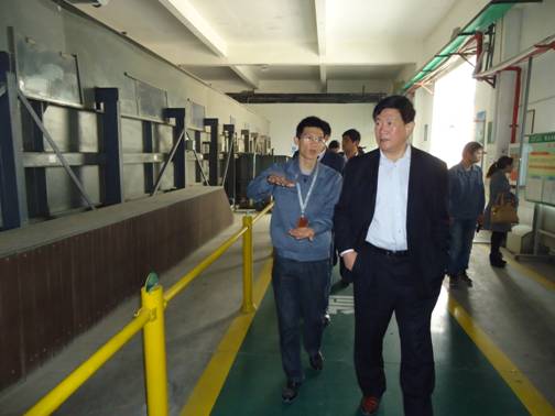 圖2. 專家組一行在格林美技術研發(fā)部何顯達博士陪同下現(xiàn)場考察鈷鎳生產(chǎn)線