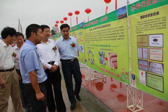 圖二 孫剛副省長(zhǎng)(中),鄧興明廳長(zhǎng)(右一)參看格林美實(shí)踐生態(tài)文明展