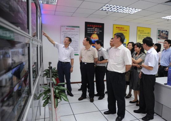 圖2 張建軍行長(左二)一行在彭本超副總經(jīng)理的陪同下參觀深圳總部的監(jiān)控系統(tǒng)