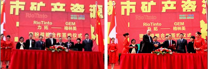 圖14格林美董事長許開華與力拓公司格萊格先生(Mr. Greg Lavallee)共同簽署鎳粉戰(zhàn)略合作協(xié)議