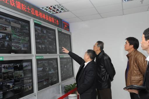 圖2? 左鐵鏞院士(左二)在格林美董事長許開華教授的陪同下參觀格林美在線監(jiān)控中心