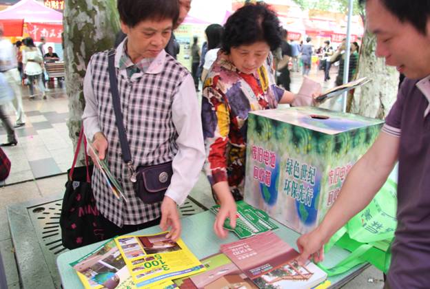 ??? 2012年5月19日,格林美于武漢市洪山區(qū)水果湖步行街參與了由省委宣傳部、省科技廳、省科協(xié)組織開展的“科技活動周”活動中的“科技惠民服務(wù)日”活動。