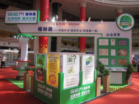 我公司為本次展會唯一特裝展位(展位號:A070),共展出了電子廢棄物拆解產(chǎn)品、塑木型材及鈷粉、鎳粉等系列資源再生產(chǎn)品。圖文展示了格林美公司宣傳片及電子廢棄物零排放拆解工藝。別致優(yōu)美的展會場景和公司優(yōu)良品質(zhì)的產(chǎn)品受到了來自國內(nèi)外同行的贊許,吸引了眾多國內(nèi)外采購商前來交流與洽談。本次展會充分展示我公司在資源再生領(lǐng)域所取得的成績,為公司產(chǎn)品起到了良好的宣傳效果,極大的提高了格林美產(chǎn)品品牌知名度和影響力。