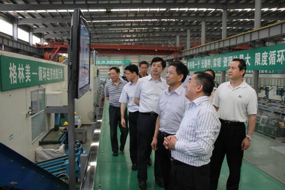 ??? 2012年5月31日下午,國家發(fā)改委體改司孔涇源司長、連啟華副司長、試點處彭紹宗處長和董文調(diào)研員,以及宏觀處刑曉東副調(diào)研員,在湖北省發(fā)改委肖安民副主任、戰(zhàn)略規(guī)劃辦王培錦副主任等的陪同下蒞臨格林美武漢循環(huán)產(chǎn)業(yè)園,考察格林美的循環(huán)經(jīng)濟發(fā)展情況,陪同人員還有武漢市發(fā)改委程致舜巡視員、兩型辦童賽雄副主任和新洲區(qū)發(fā)改委、陽邏經(jīng)濟開發(fā)區(qū)相關(guān)負責(zé)同志。董事長許開華教授進行了熱情接待和詳細匯報,并陪同參觀了視頻監(jiān)控系統(tǒng)、電子廢棄物倉庫、電子廢棄物拆解分廠、塑木型材分廠和擬建的廢燈管回收利用車間。