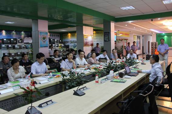 圖1. 董事許開華教授向孔涇源司長(左二)、連啟華副司長(前右一)介紹格林美視頻監(jiān)控系統(tǒng)