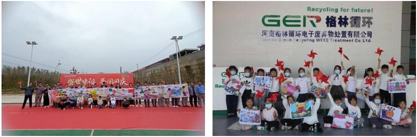 荊門低碳產(chǎn)業(yè)園三區(qū)組織開展“綠色循環(huán),樂FUN國慶”親子活動,格林循環(huán)河南園區(qū)也邀請當?shù)赜變簣@小朋友來到園區(qū),共慶祖國華誕。在愛國簽到墻上,大家紛紛寫下對祖國母親的祝福;新入職大學畢業(yè)生表演愛國手勢舞、少年萌娃共同誦讀《少年中國說》,傳承國學經(jīng)典;全員共繪十米巨畫,鋪展開來濃烈的愛國情懷。