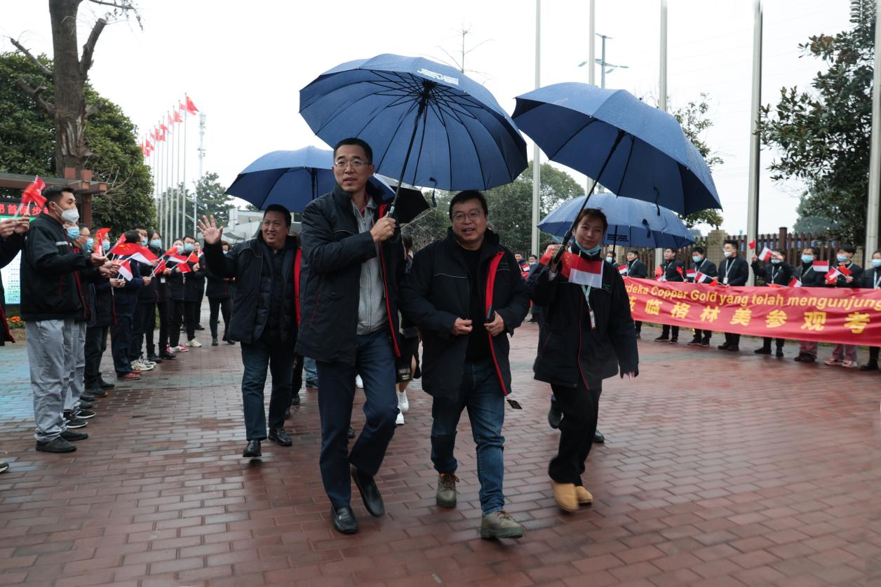 萬里的距離擋不住格林美與印尼的緣分,淅淅瀝瀝的小雨阻擋不了格林美人的熱情。Garibaldi Thohir先生一行抵達(dá)園區(qū)大門時(shí),中印尼兩國的國旗在園區(qū)上空迎風(fēng)飄揚(yáng),格林美—印尼政府—中南大學(xué)聯(lián)合培養(yǎng)國際冶金工程研究生班留學(xué)生與近百名格林美員工夾道歡迎。許開華董事長向Garibaldi Thohir先生一行介紹了位于歡迎隊(duì)伍最前排的在華印尼留學(xué)生,三位嘉賓親切地與他們握手交流。