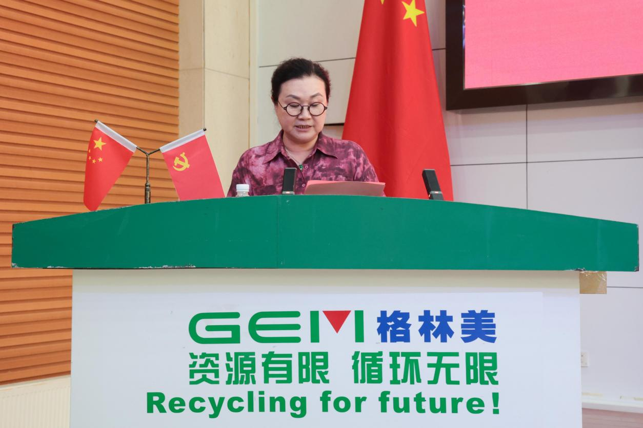 圖2 格林美集團(tuán)黨委副書記、董事王敏同志宣讀關(guān)于七一表彰的決定
