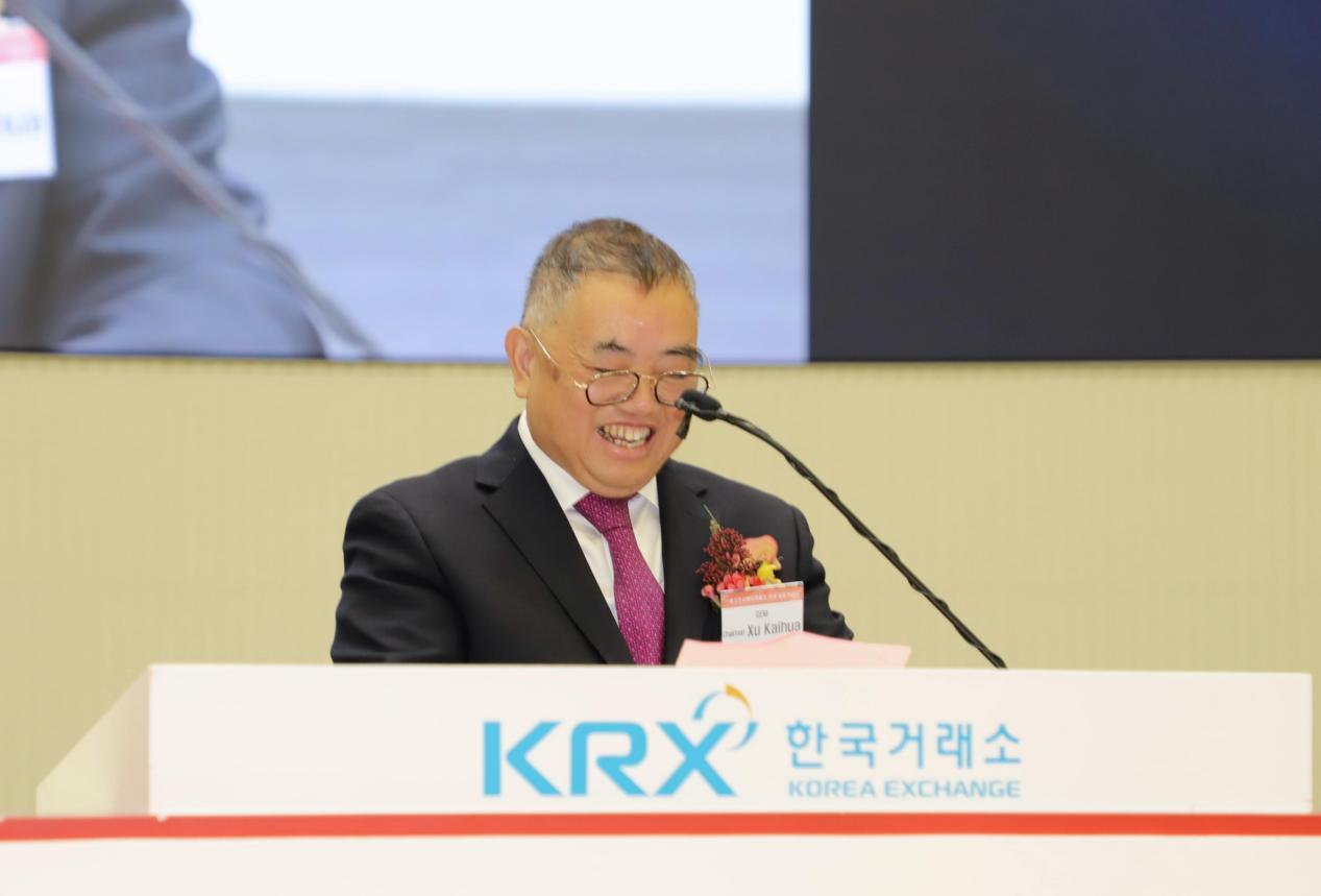 圖3 格林美集團(tuán)董事長許開華教授在EcoPro Materials上市儀式上作為股東代表致辭