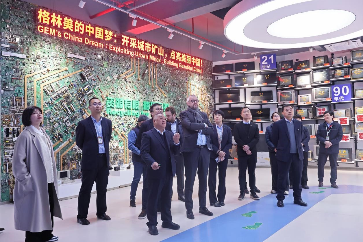圖5 簽約儀式前,英美資源集團(tuán)全球市場營銷總監(jiān)(鎳及不銹鋼原料)John Eastwood先生一行參觀格林美“城市礦山”博物館