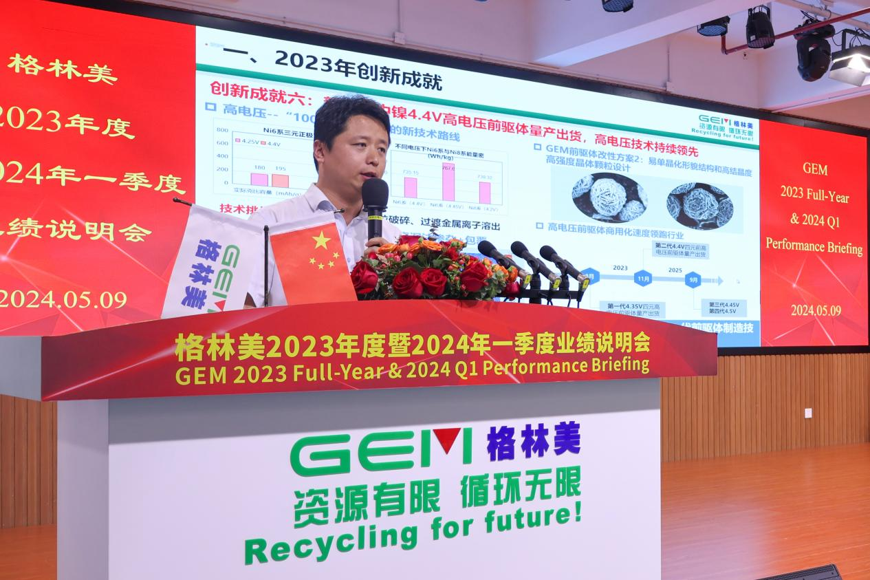 2024年5月9日,格林美2023年度暨2024年一季度業(yè)績(jī)說(shuō)明會(huì)在格林美(深圳)超級(jí)綠色技術(shù)研究院、格林美印尼青美邦園區(qū)同步舉行。格林美集團(tuán)黨委書(shū)記、董事長(zhǎng)許開(kāi)華教授,集團(tuán)聯(lián)合實(shí)控人、董事王敏女士、集團(tuán)獨(dú)立董事劉中華先生出席會(huì)議。20余家投資機(jī)構(gòu)與新聞媒體現(xiàn)場(chǎng)參會(huì),大會(huì)同時(shí)面向全球同步直播。