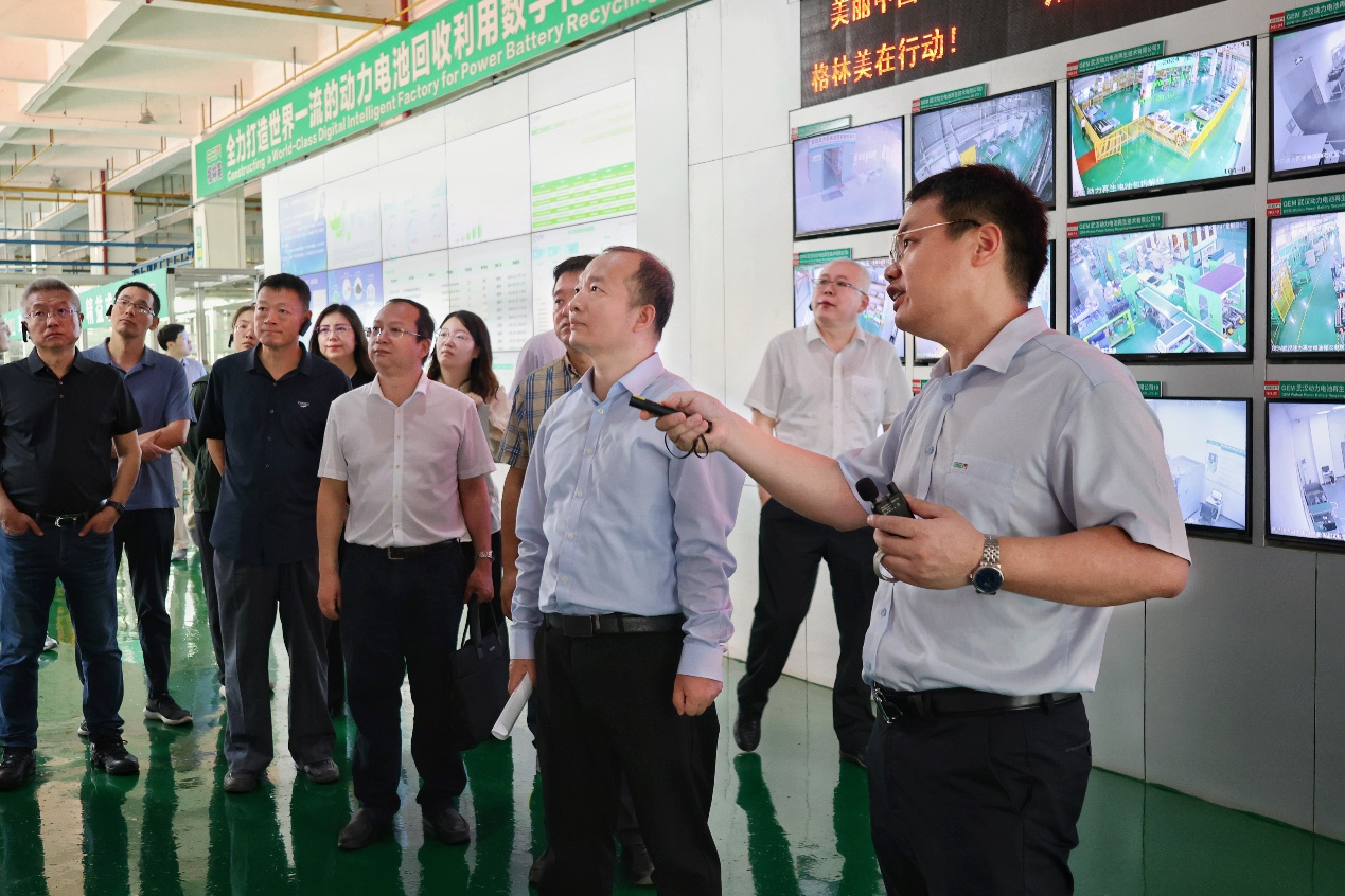 張宇平博士首先對(duì)溫雪峰副司長一行蒞臨格林美指導(dǎo)工作表示熱烈歡迎,隨后陪同溫雪峰副司長一行參觀了格林美“城市礦山”博物館、綠色產(chǎn)業(yè)(武漢)創(chuàng)新研究院、退役動(dòng)力電池再制造車間及數(shù)字化智能拆解車間,全方位了解了格林美的循環(huán)經(jīng)濟(jì)理念、全球布局、創(chuàng)新技術(shù)和產(chǎn)業(yè)實(shí)踐。溫雪峰副司長表示,通過此次調(diào)研,對(duì)動(dòng)力電池回收利用行業(yè)有了更加深入的了解,對(duì)格林美動(dòng)力電池?cái)?shù)字化、智能化拆解技術(shù)感到欽佩。他強(qiáng)調(diào),為了推動(dòng)動(dòng)力電池回收利用行業(yè)的規(guī)范化發(fā)展,未來將會(huì)出臺(tái)更加完善的相關(guān)制度,與企業(yè)開展積極緊密的合作,著力培育行業(yè)內(nèi)的領(lǐng)軍企業(yè),以推動(dòng)行業(yè)實(shí)現(xiàn)更高質(zhì)量的發(fā)展目標(biāo)。