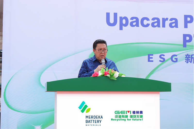 儀式上,Garibaldi Thohir先生發(fā)表致辭。他首先感謝許開(kāi)華教授與格林美團(tuán)隊(duì)的辛勤付出與技術(shù)支持,這是ESG項(xiàng)目發(fā)展如此迅猛的關(guān)鍵因素。他表示,將會(huì)持續(xù)關(guān)注ESG項(xiàng)目在第四季度的順利啟用,期待與各位合作伙伴在全球能源轉(zhuǎn)型背景下,一同成為電動(dòng)汽車(chē)價(jià)值鏈中的領(lǐng)軍者!