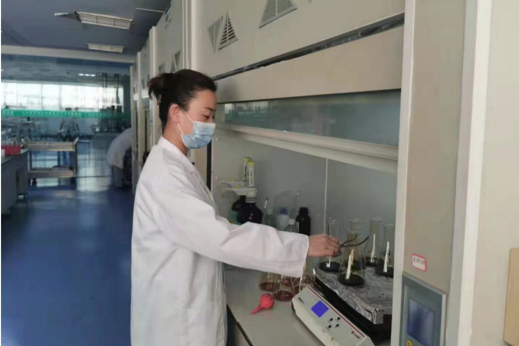 馬琳正在對(duì)產(chǎn)品樣品進(jìn)行分析檢測(cè)