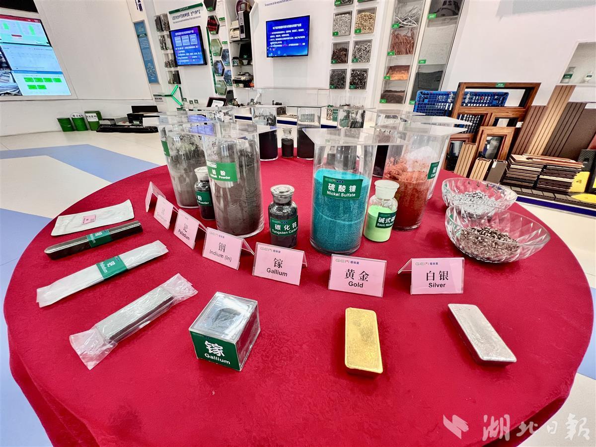 一走進(jìn)廠(chǎng)區(qū),一扇由各個(gè)時(shí)期各個(gè)品牌的老電視機(jī)拼成的“電視墻”,一瓶瓶從電子廢棄物上回收的鈷、銦、鎵等金屬物,一幀幀操作車(chē)間生產(chǎn)畫(huà)面,都讓人真切地感受到循環(huán)經(jīng)濟(jì)的“魅力”。